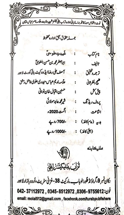 Sheikh Tusi AlGhaybah - urdu tarjuma Bihar-ul-Anwar Jild 12 Sheikh Muhammed Khan Kirmani - Kitaab AlMubeen Kitaab Mere Maula